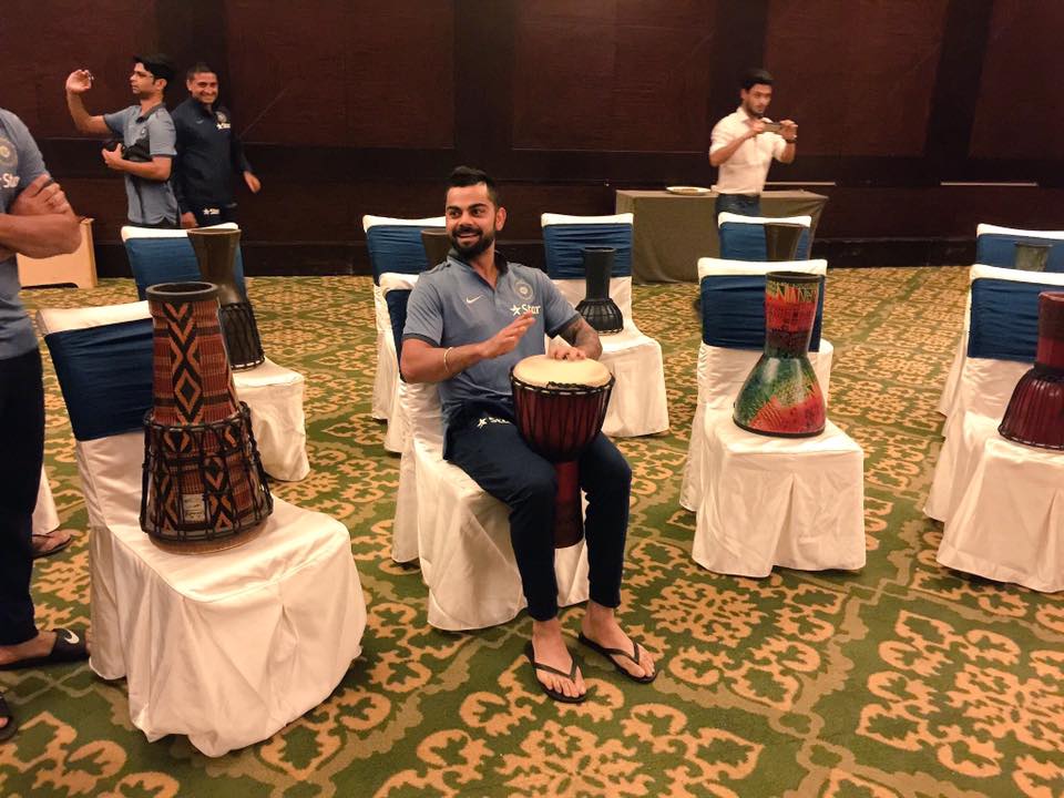 Indian cricket team bonding session : MSD, Kohli & co dance with drums
